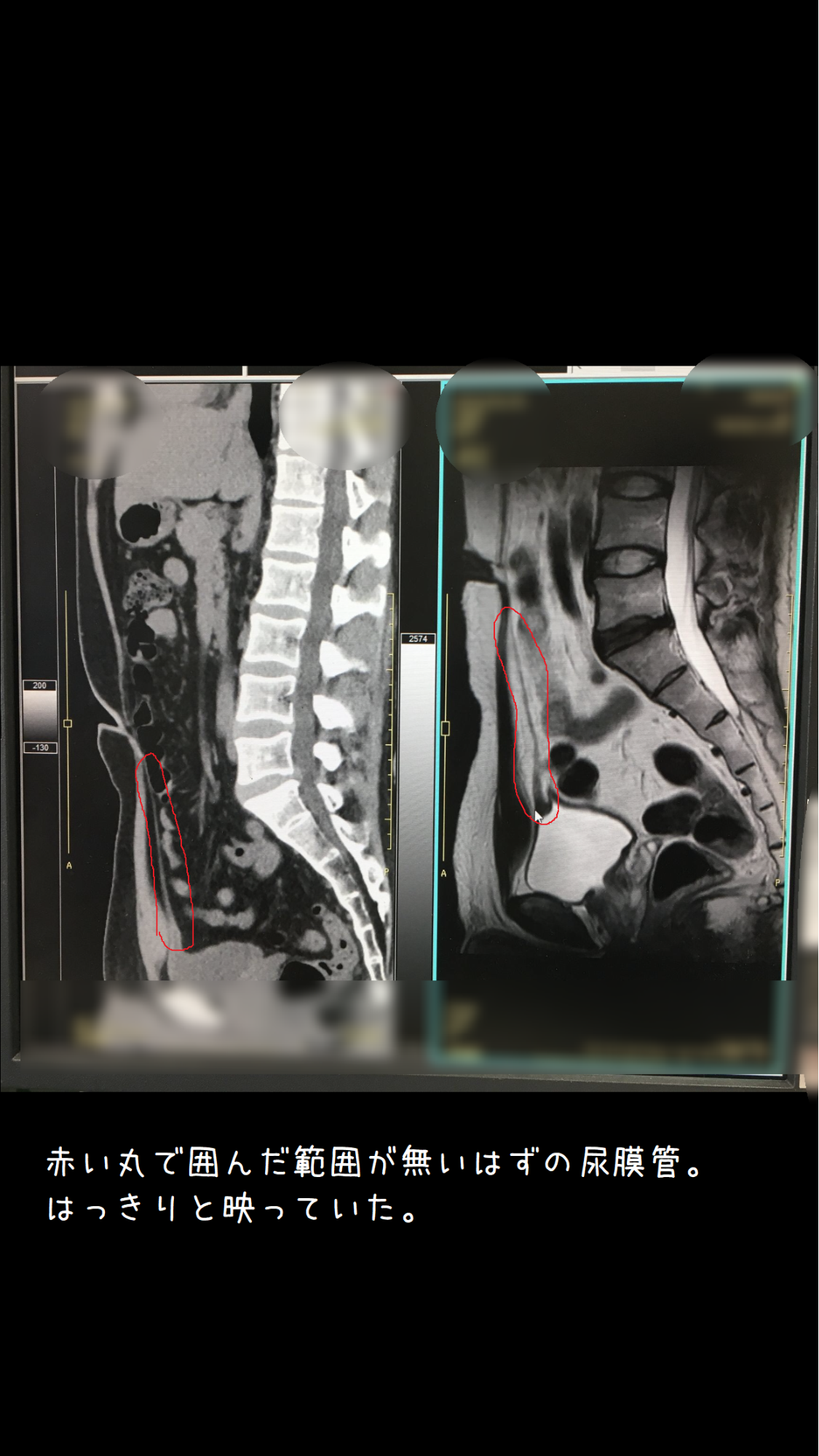 更に、尿膜管が膀胱と繋がっており、膀胱の内側から穴が開いている可能性があるので、やはり見ましょうとのこと。