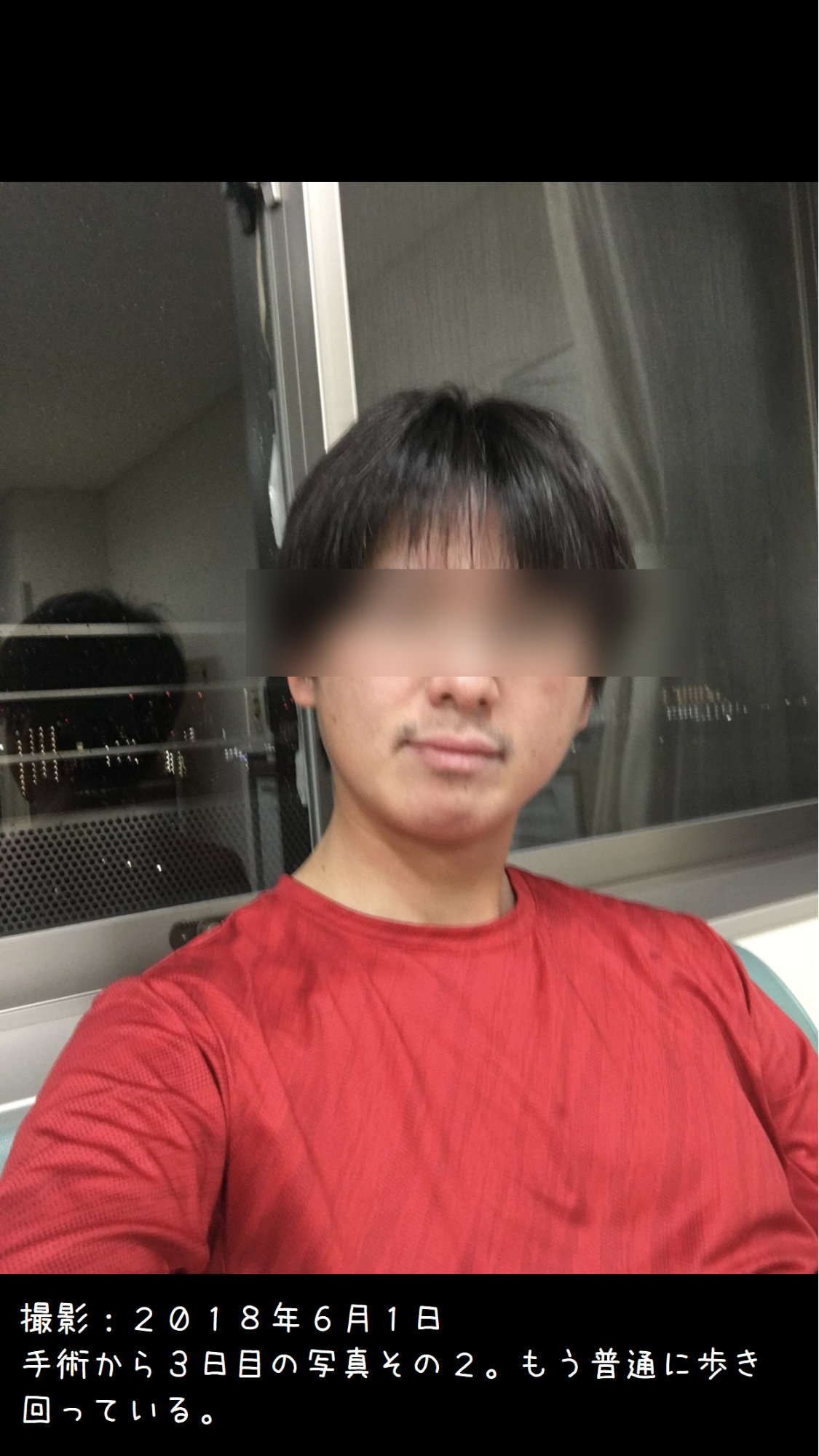 病室に嫁が到着、それとほぼ同時に看護師が呼びにきた。いよいよ手術室だ。手術の怖さは特になかった。この時の心境は緊張が4と、早く終わってほしいという面倒臭さが6くらい。なにをされようとも、尿道から内視鏡を入れられるよりはマシである。余裕のよっちゃん。