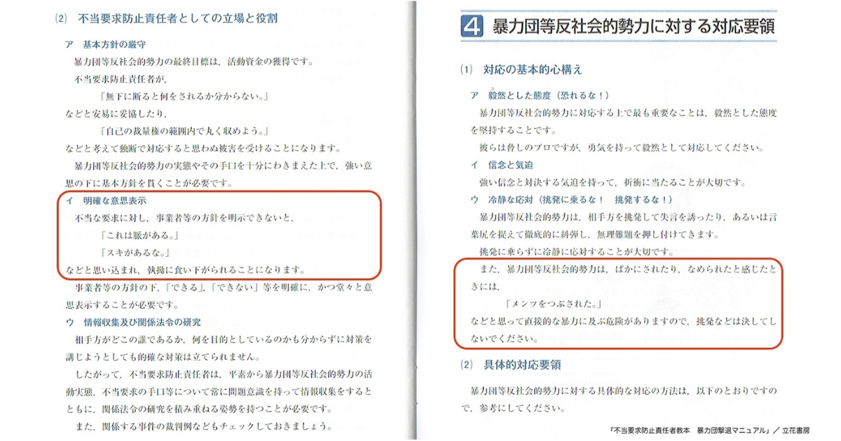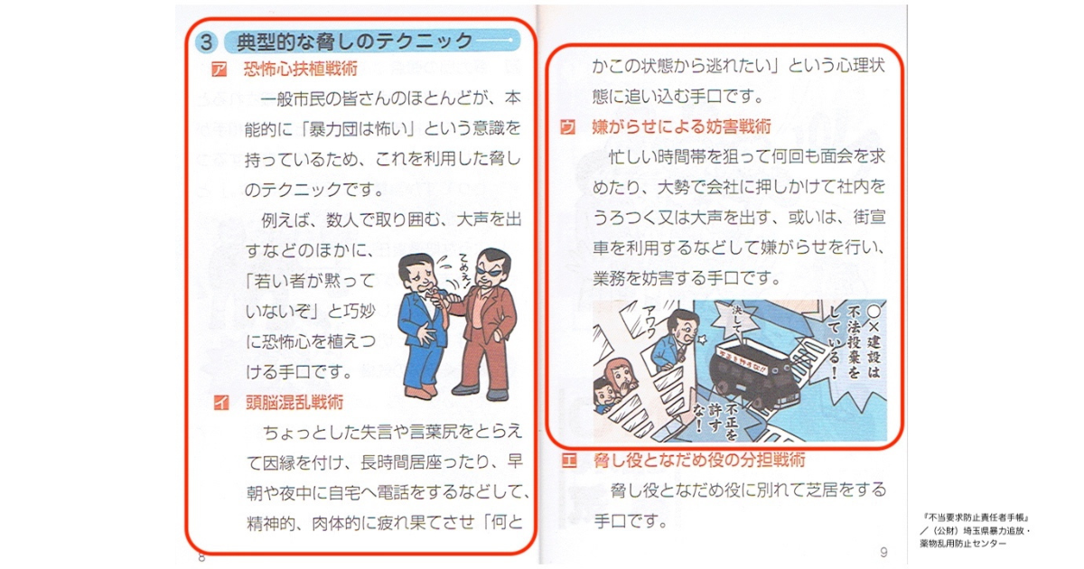 警察等の行政機関が提示する暴力団及び悪徳業者が行う不当要求や商法•話術と同様の行為を、またその活動に加担・助長する行為を、その自覚の有無を問わず、繰り返し行なっている者