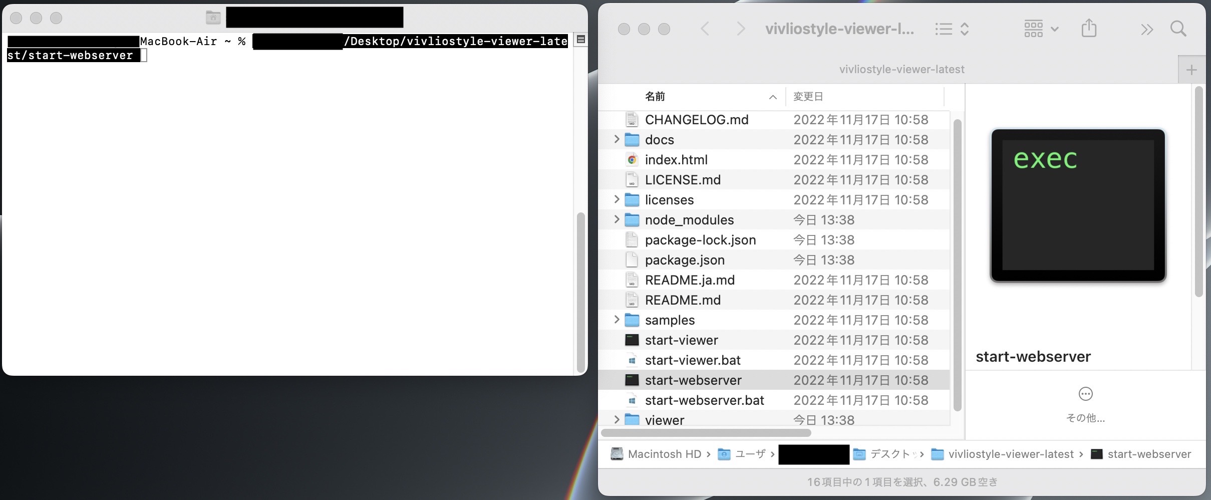 2.「 Desktop/」→「vivliostyle-viewer-latest/」→「viewer/」と操作して開く。