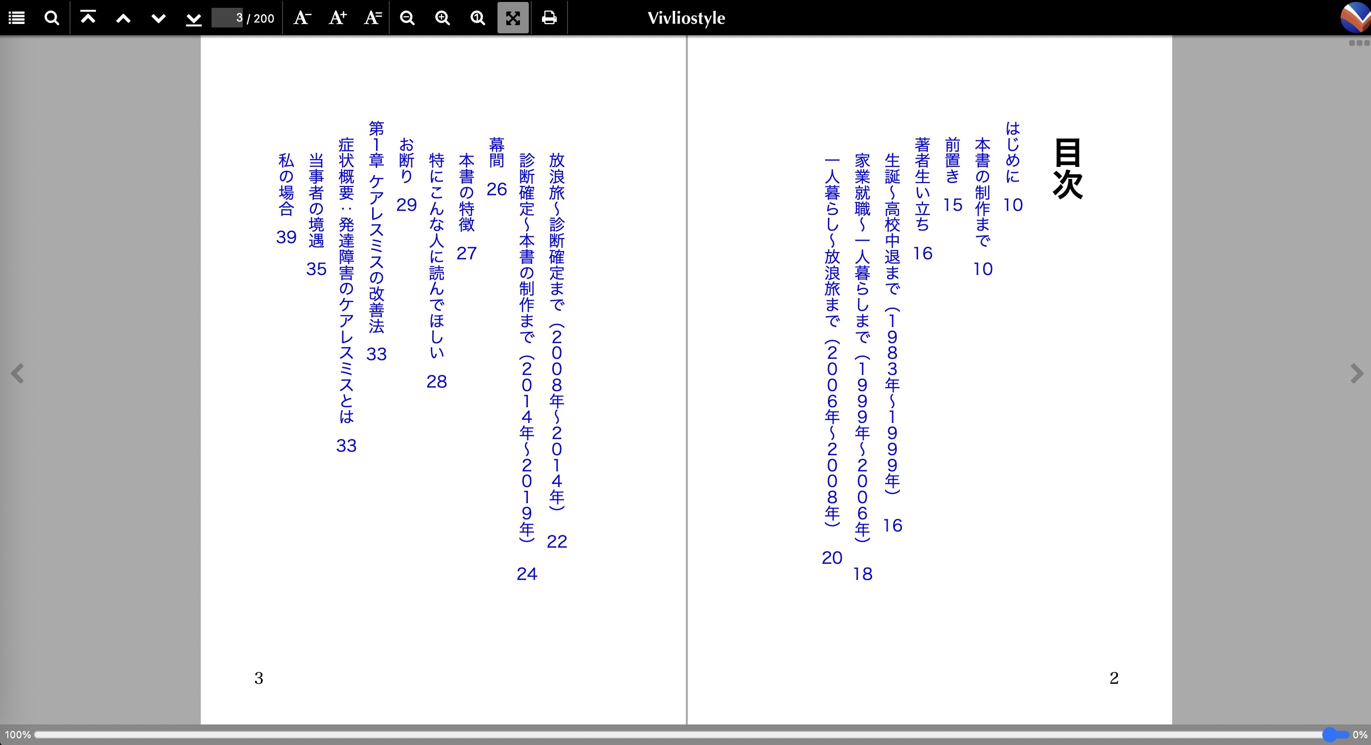 紙媒体の本にはページ番号入りの目次ページが不可欠ですが、前項の「Vivliostyle Viewer」を使った方法で生成されたPDFファイルの目次ページは簡素なもので、こだわったデザインをつくるとなるとHTMLとCSSの知識が必要です。